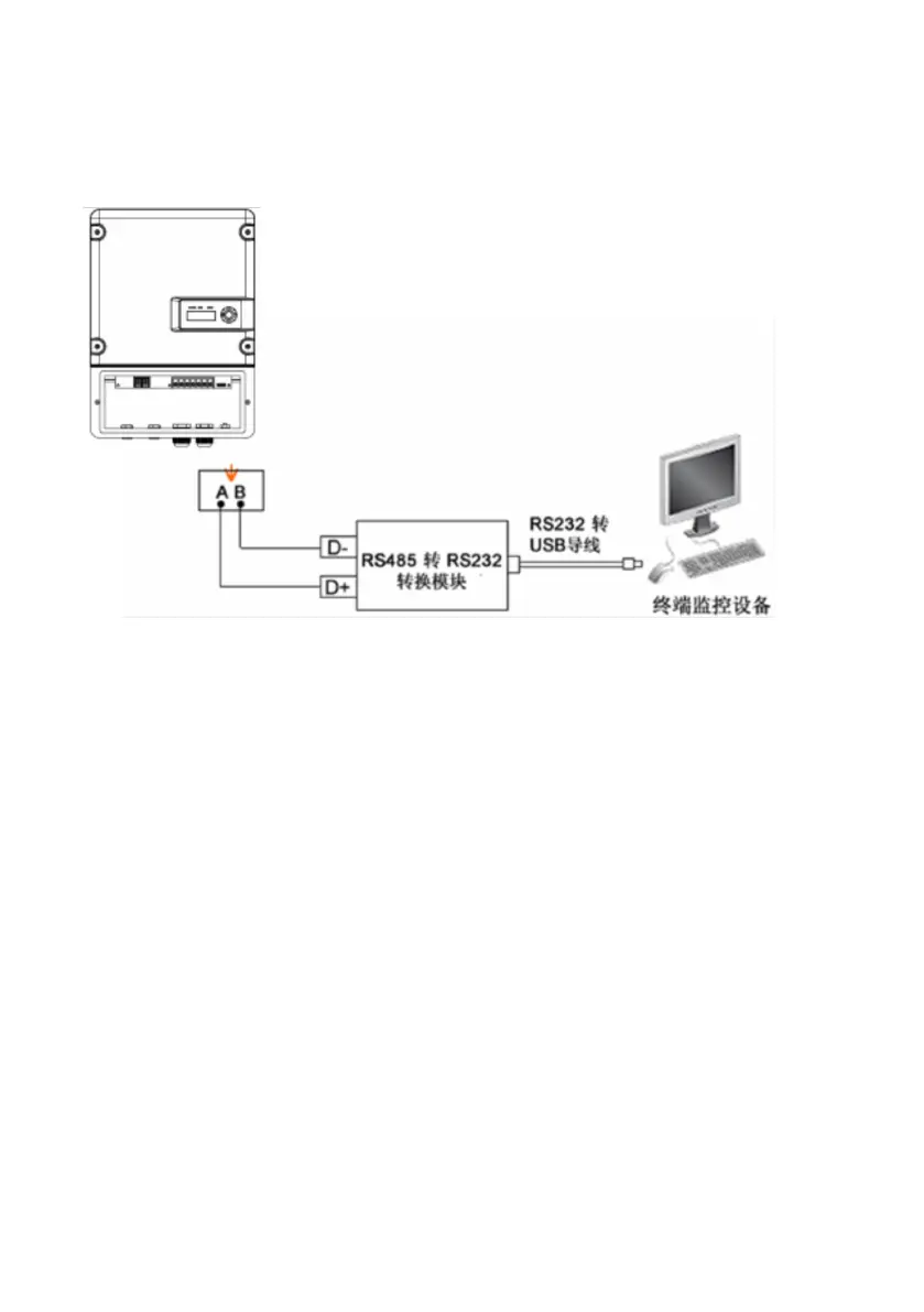The following diagram guide you to connect a single inverter to monitoring equipment.