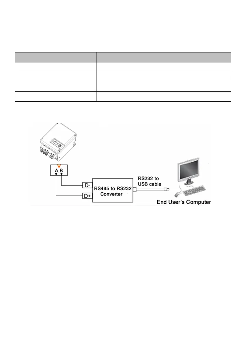 The following diagram guide you to connect a single inverter to monitoring equipment.