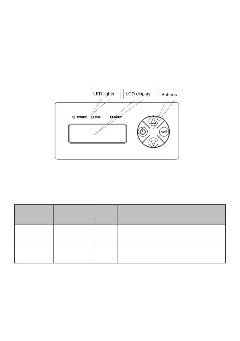 There are three LED lights, four buttons on the LCD Display, shown in figure