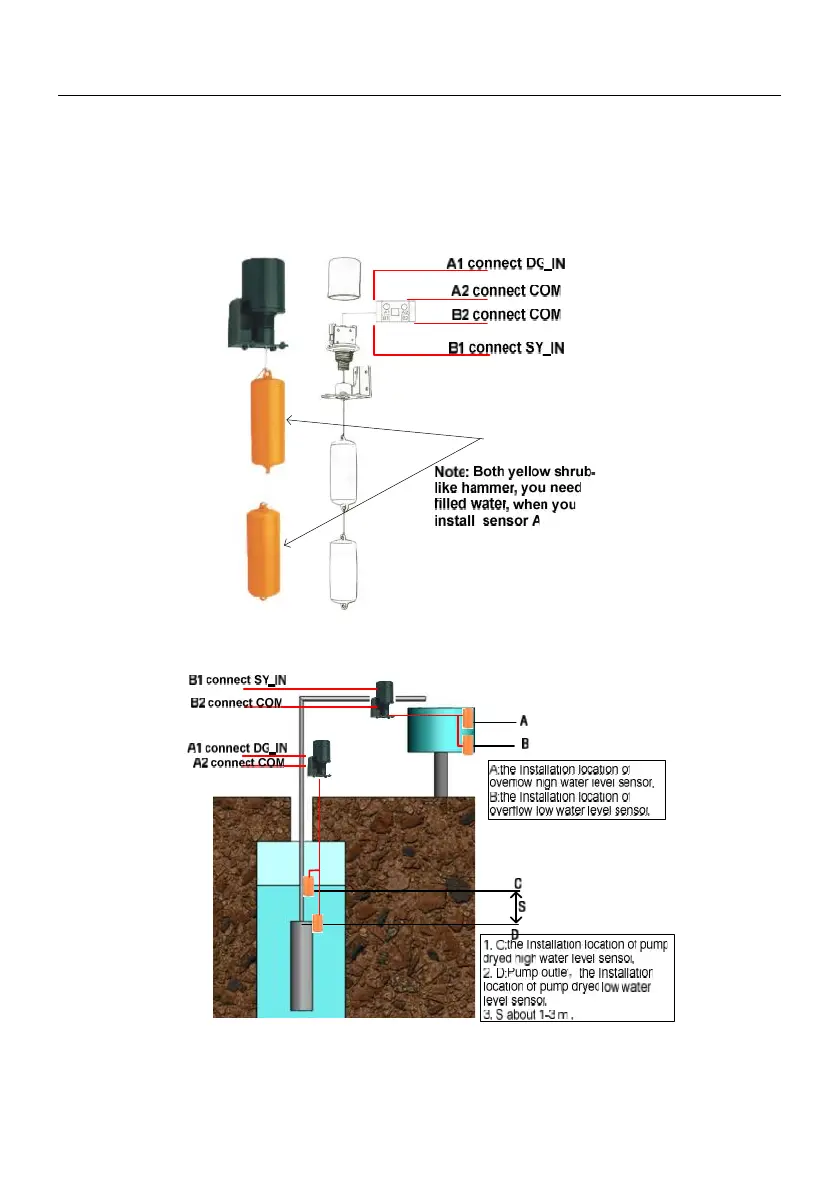 If you selected water level sensor A, then water sensor installation method is shown below: