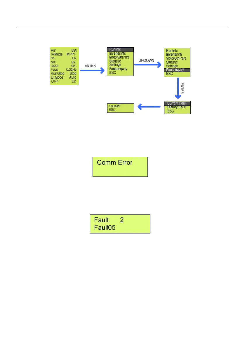 press “ENTER” to quit. (When LCD screen show fault code, and fault LED