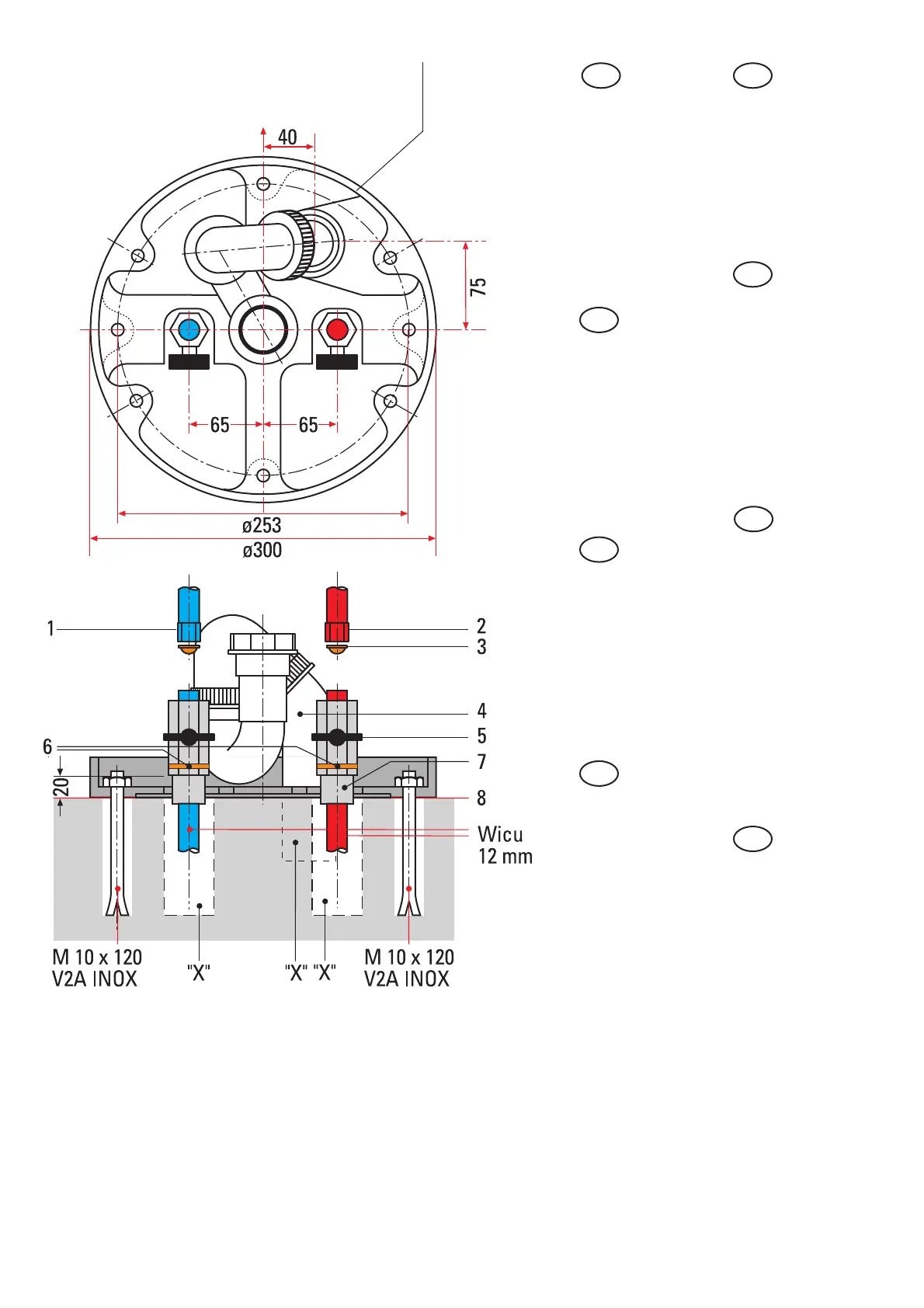 “X“: 3 x doorvoer door vloer