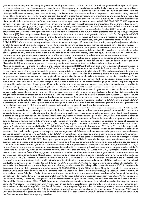 JOCCA 1507 - Warranty Conditions and Exclusions