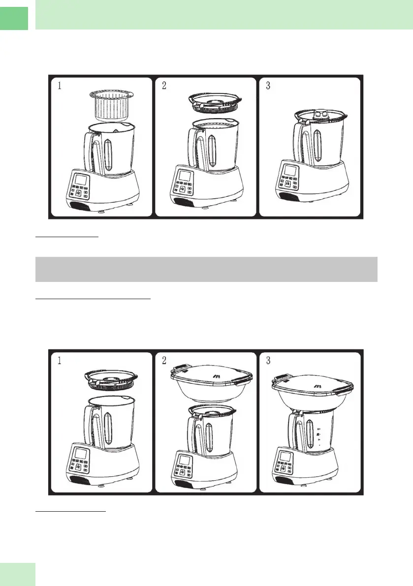 3. Place the steamer assembly on the machine in the following order: the steamer basket, then,