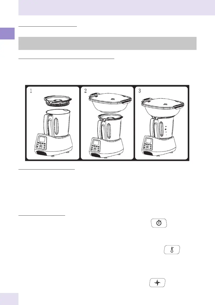 3. Placez l’ensemble cuisson vapeur sur le robot dans l’ordre suivant grand panier vapeur puis si