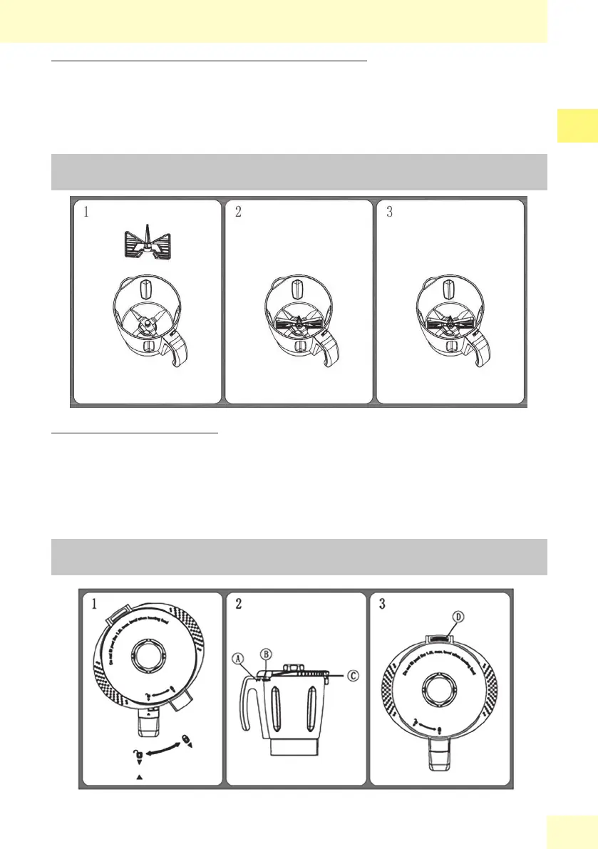 entrerà il gancetto (b) nella ranura del manico del recipiente miscelatore (a), gura 2 .