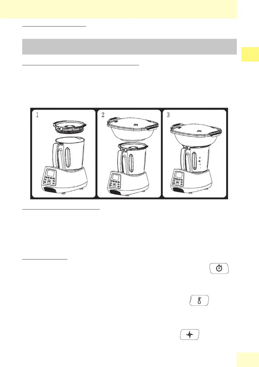 3. Collocare il set per la cottura a vapore sul robot nell’ordine seguente: cestello principale vaporiera,