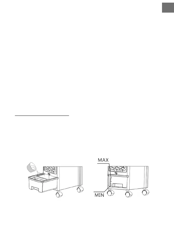 -Fill in the water tank deposit respecting the MAX and MIN level