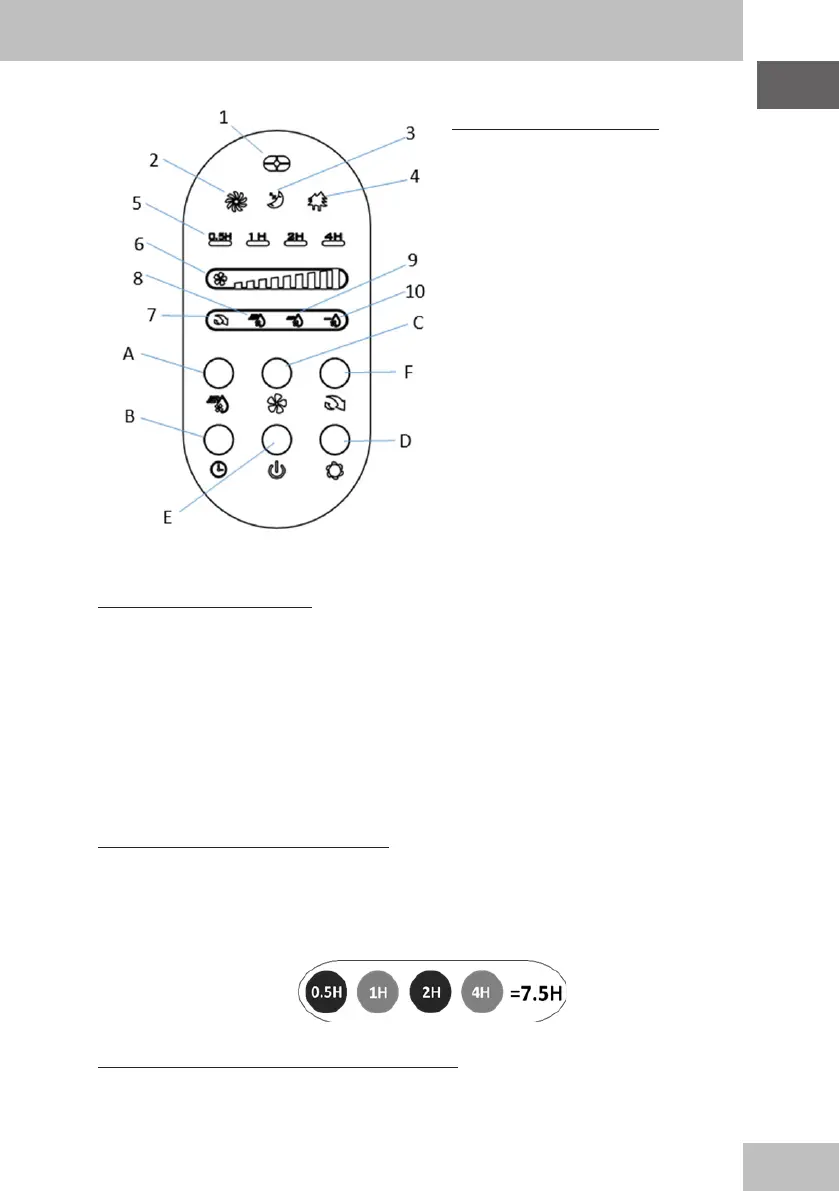 Presione el botón “Temporizador” cuando el ventilador esté encendido. El indicador