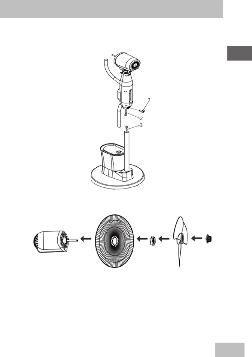 - Installare la griglia posteriore, il dado in plastica, le lame e il fissaggio delle pale