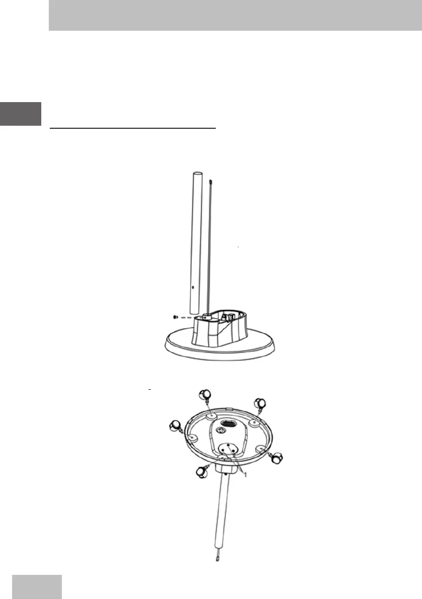 -Desaparafuse o parafuso do tubo de suporte e passe o cabo da base através do