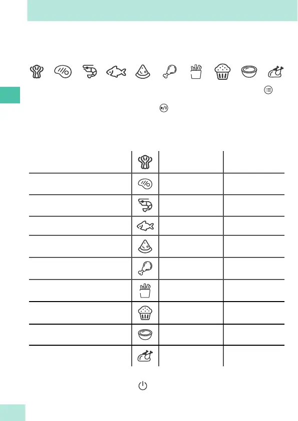 mange gange som nødvendigt for at vælge den mad, du vil tilberede, og