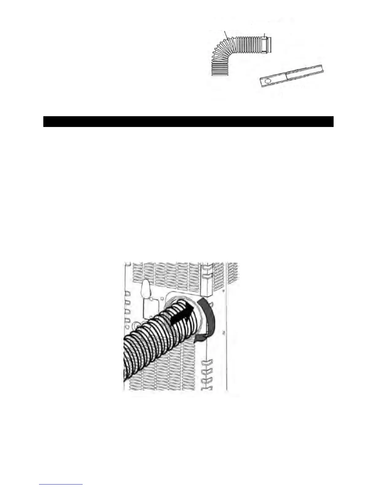 ● Slide the square end of the exhaust duct over the hot air outlet on the back of the unit.