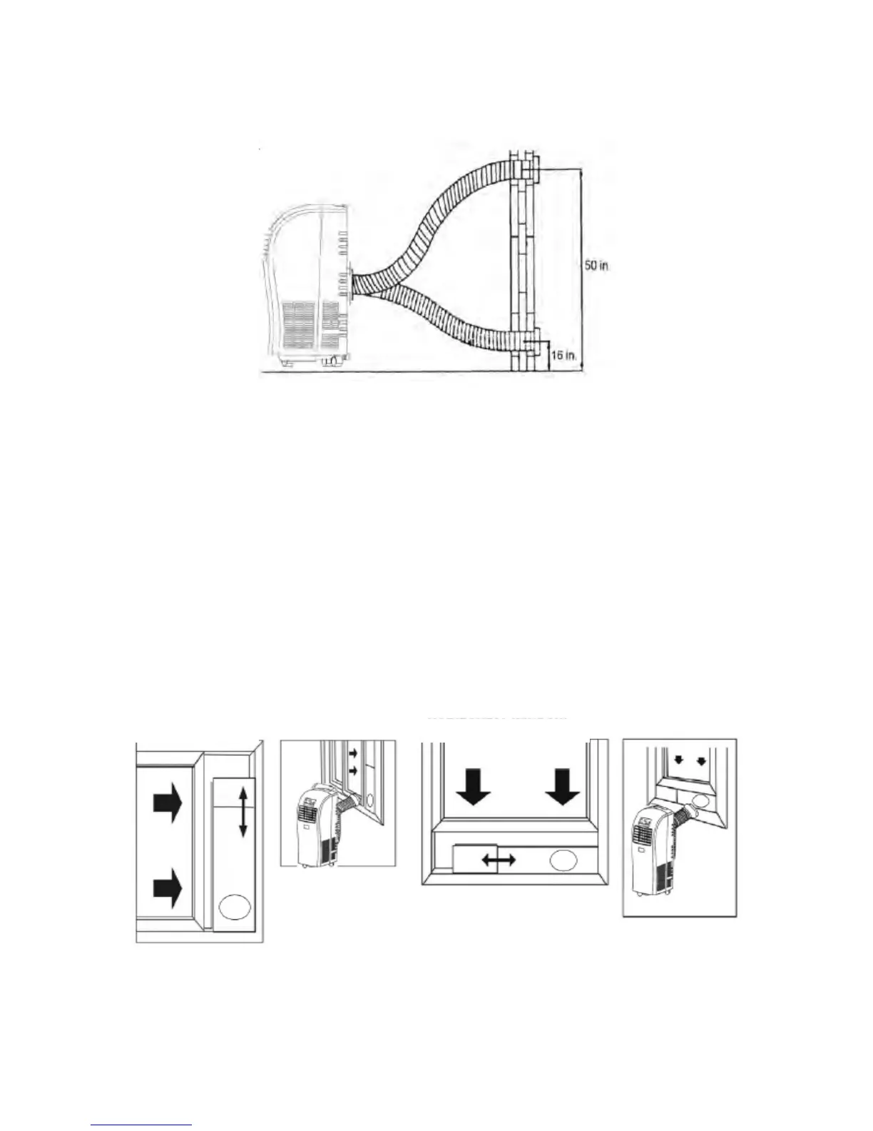 O ar de exaustão quente pode ser ventilado pela parede ou pela janela. Se montar na