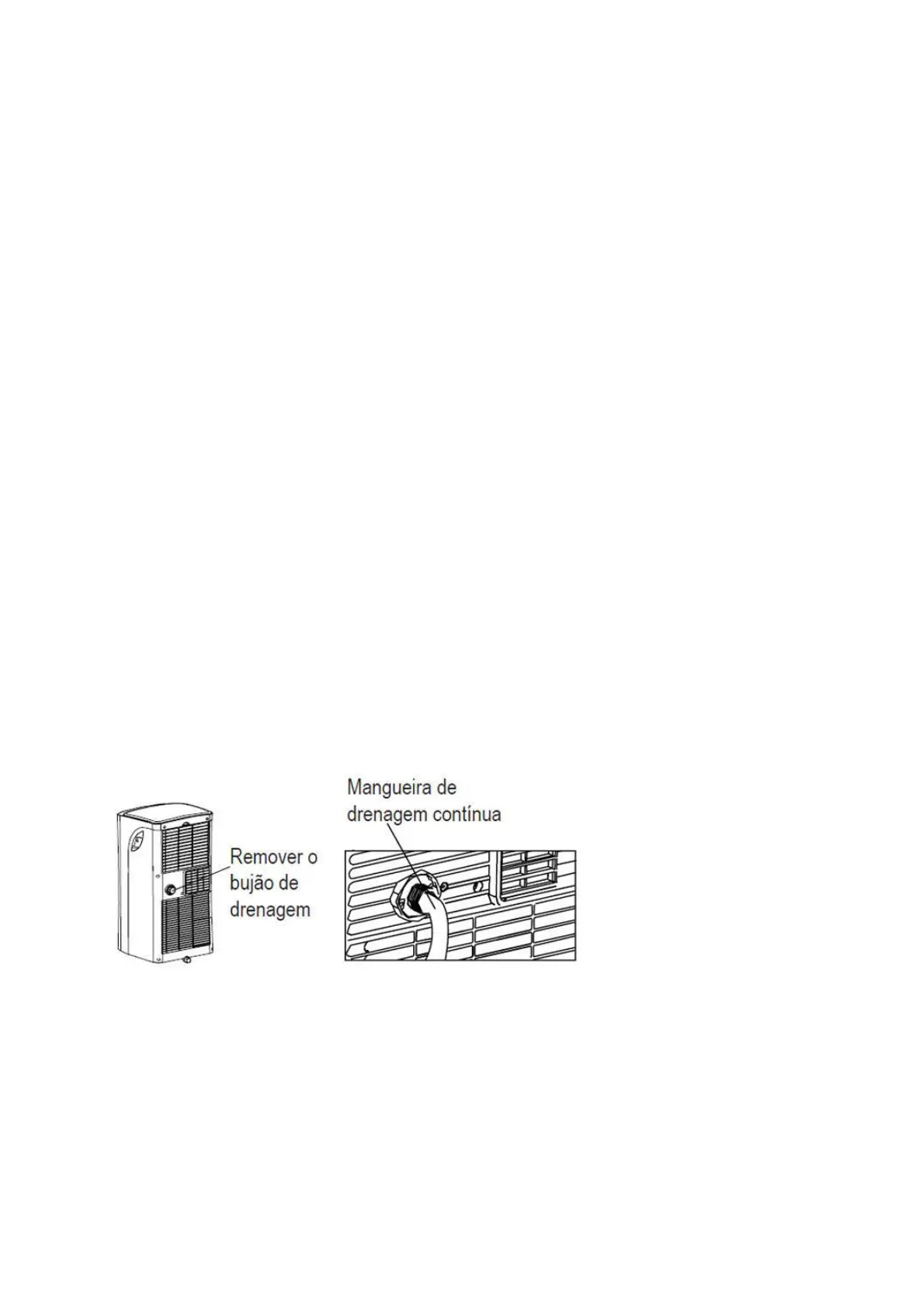 - Durante os modos de desumidificação, remova o bujão de drenagem da parte de trás do aparelho, instale o