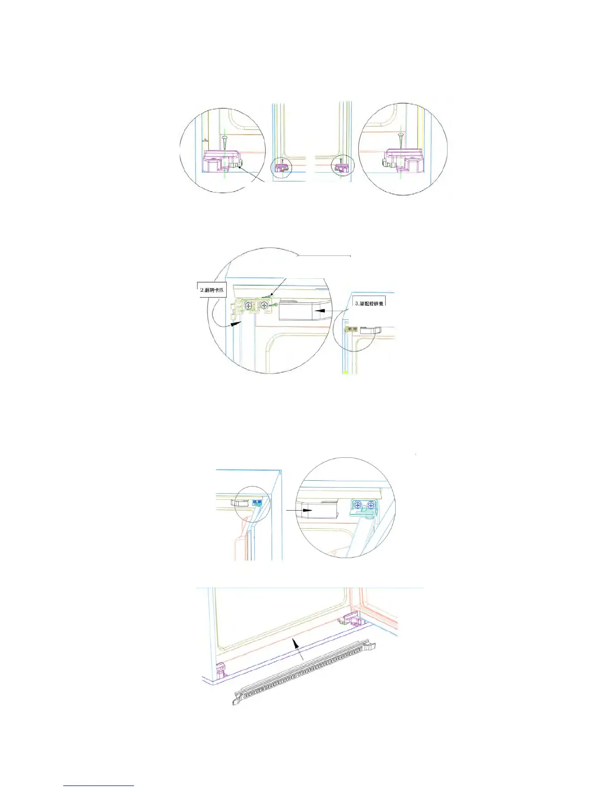 10. Instale el deflector inferior entre las dos patas fijas del congelador para tapar la holgura de 22mm.
