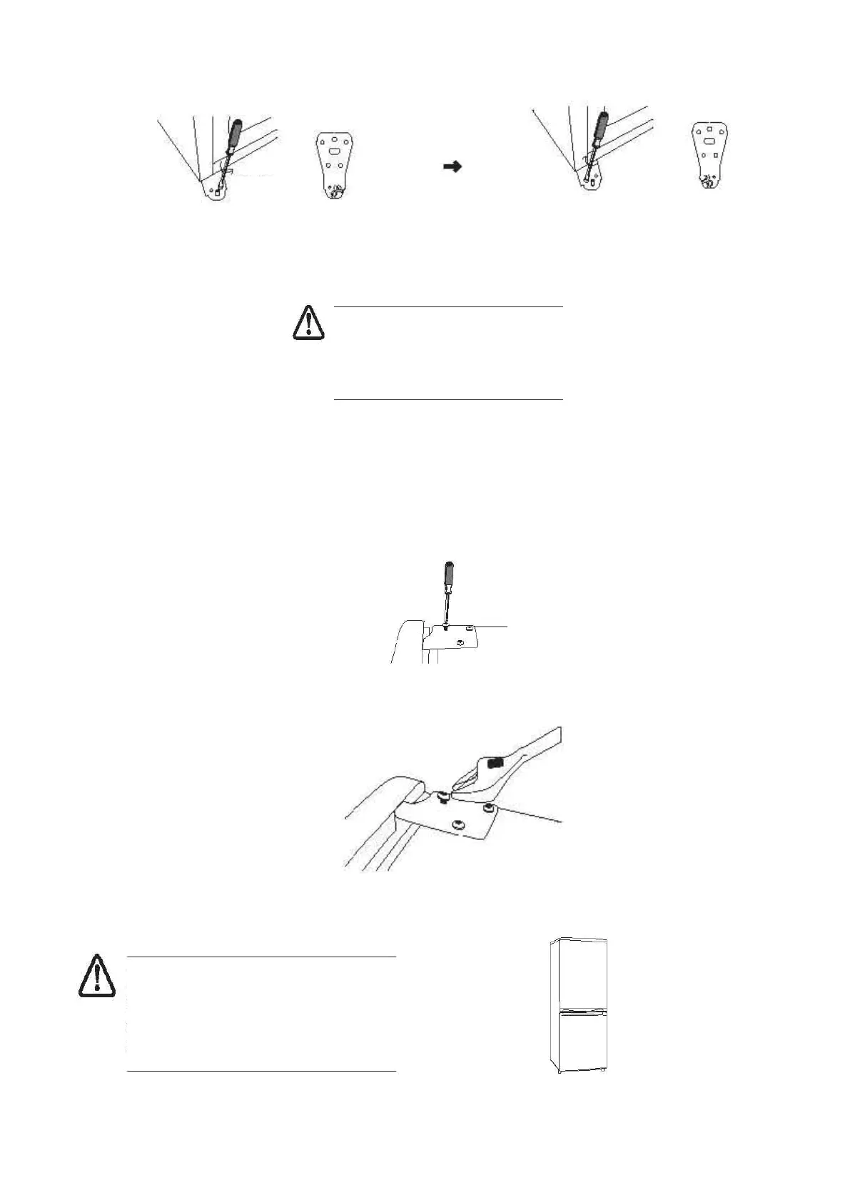 a. Introduza o suporte da dobradiça e enrosque-o na parte de cima do frigorífico.