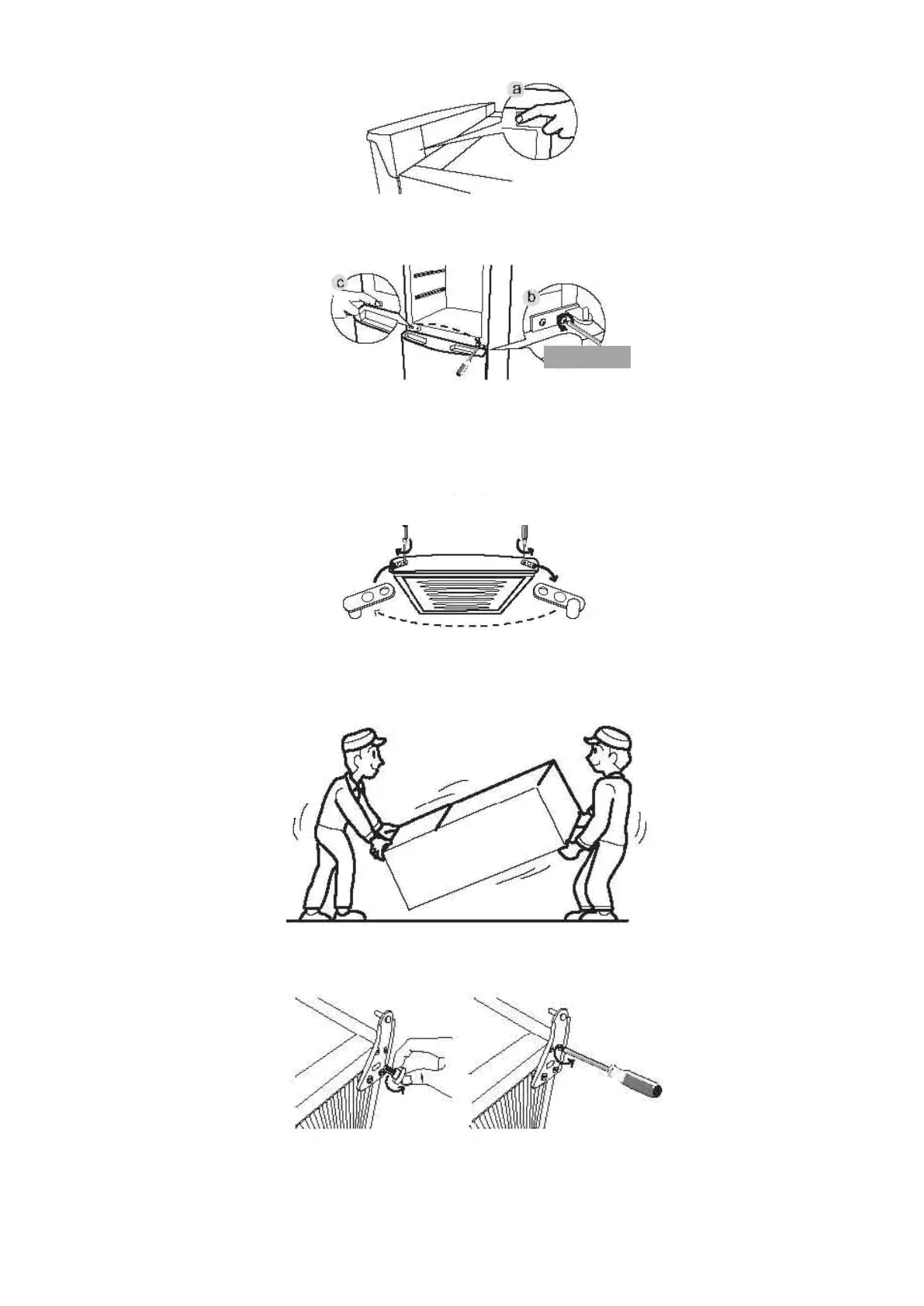 b. Quite la bisagra central sacando los tornillos. Retire la puerta del frigorífico.