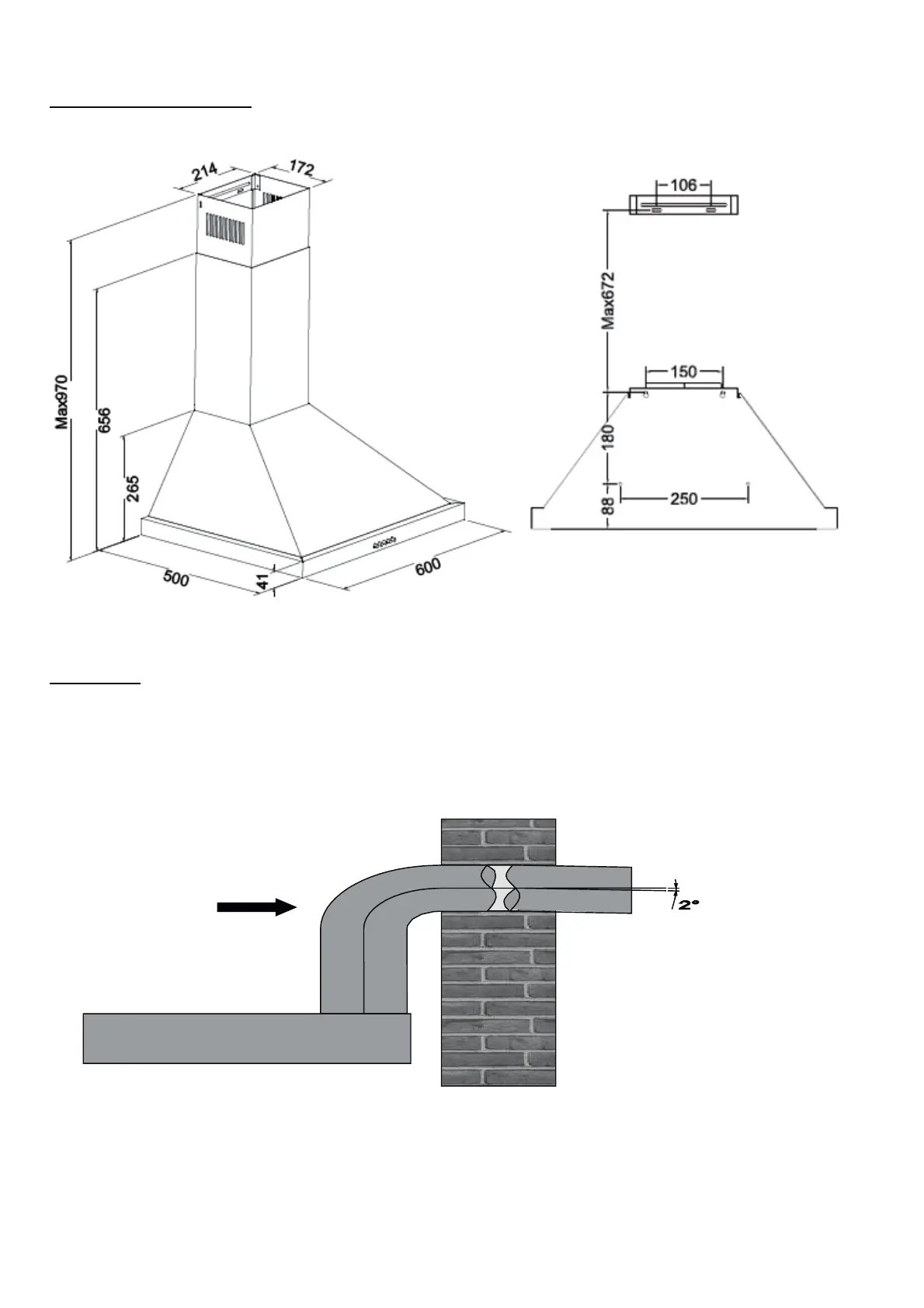 uma inclinação de 2°. Caso contrário, entrará condensação para o motor da chaminé.