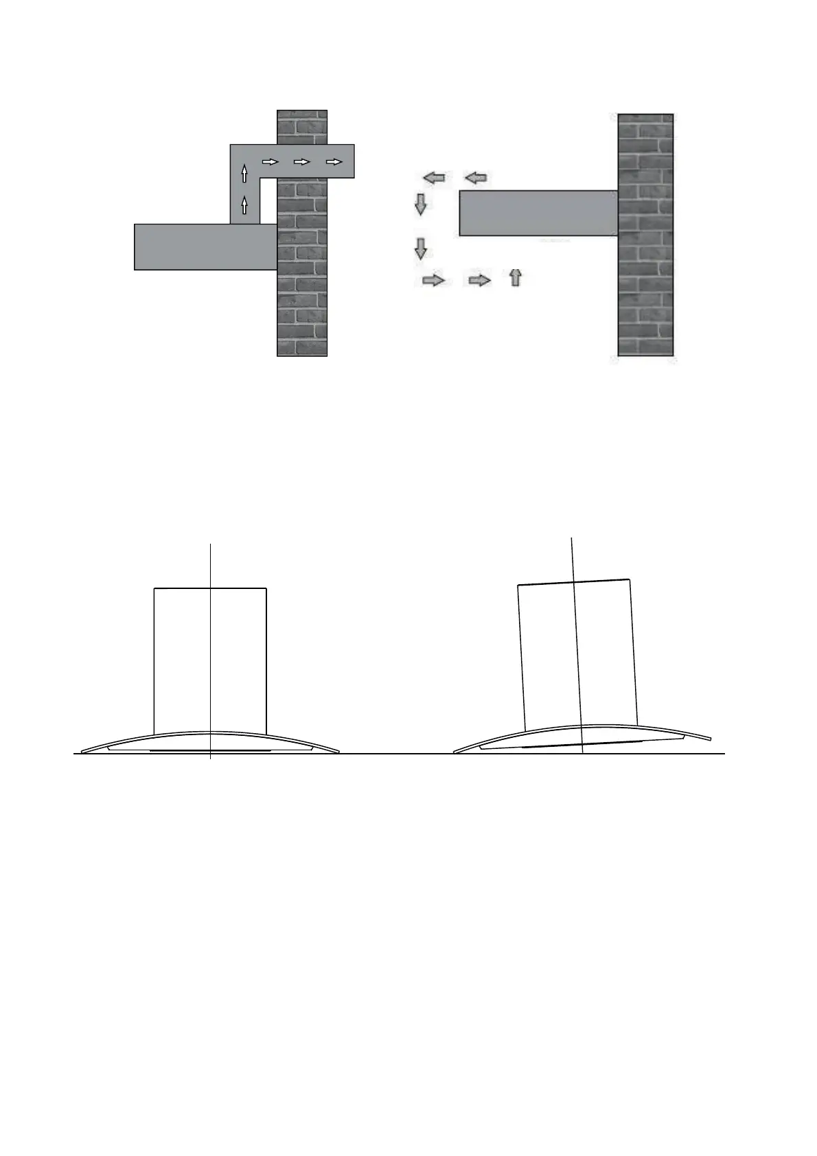 Verifique a posição correta da chaminé das perspetivas laterais e frontais. Caso contrário, o aparelho não