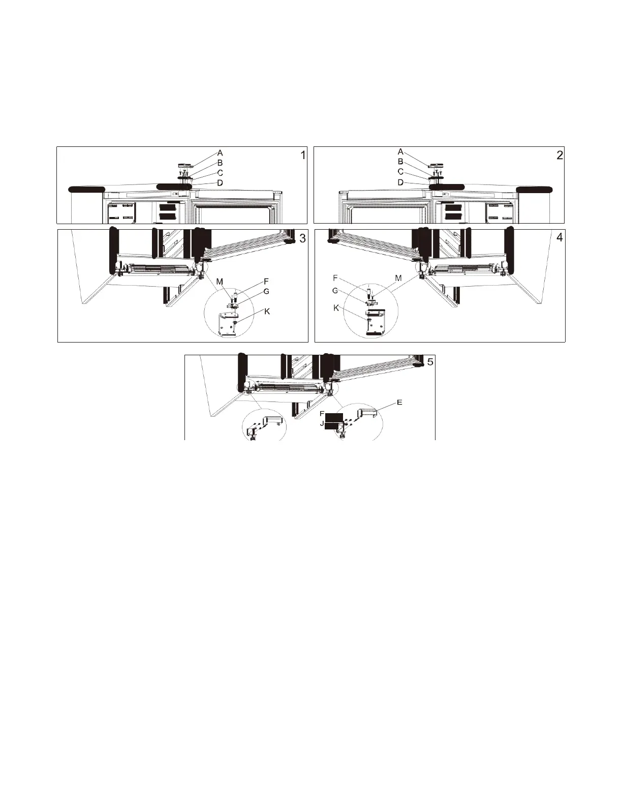 7. Reinstale os eixos inferiores da porta (F e G).
