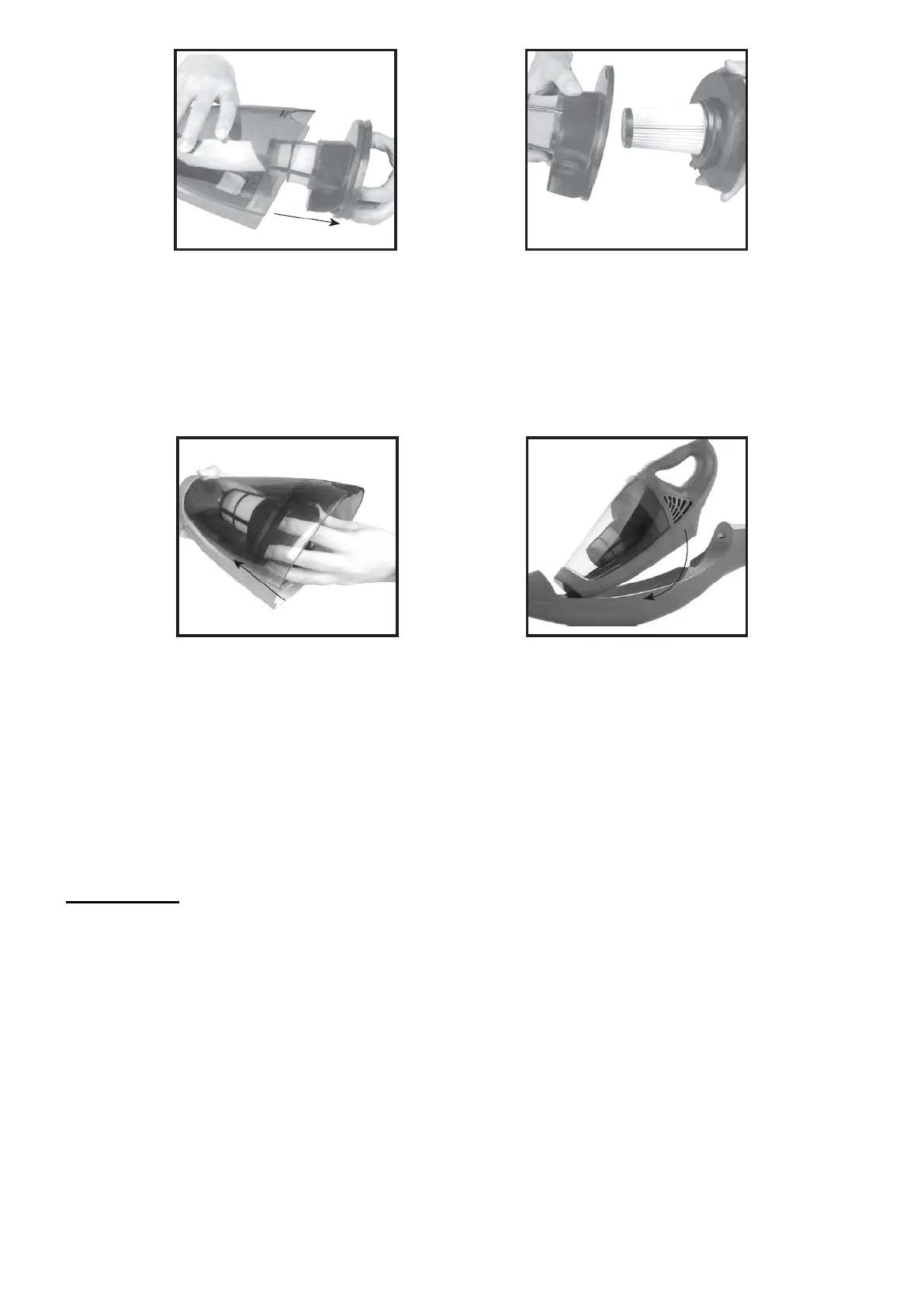 • Check that the dust container and the filter are completely dry before the appliance is assembled and