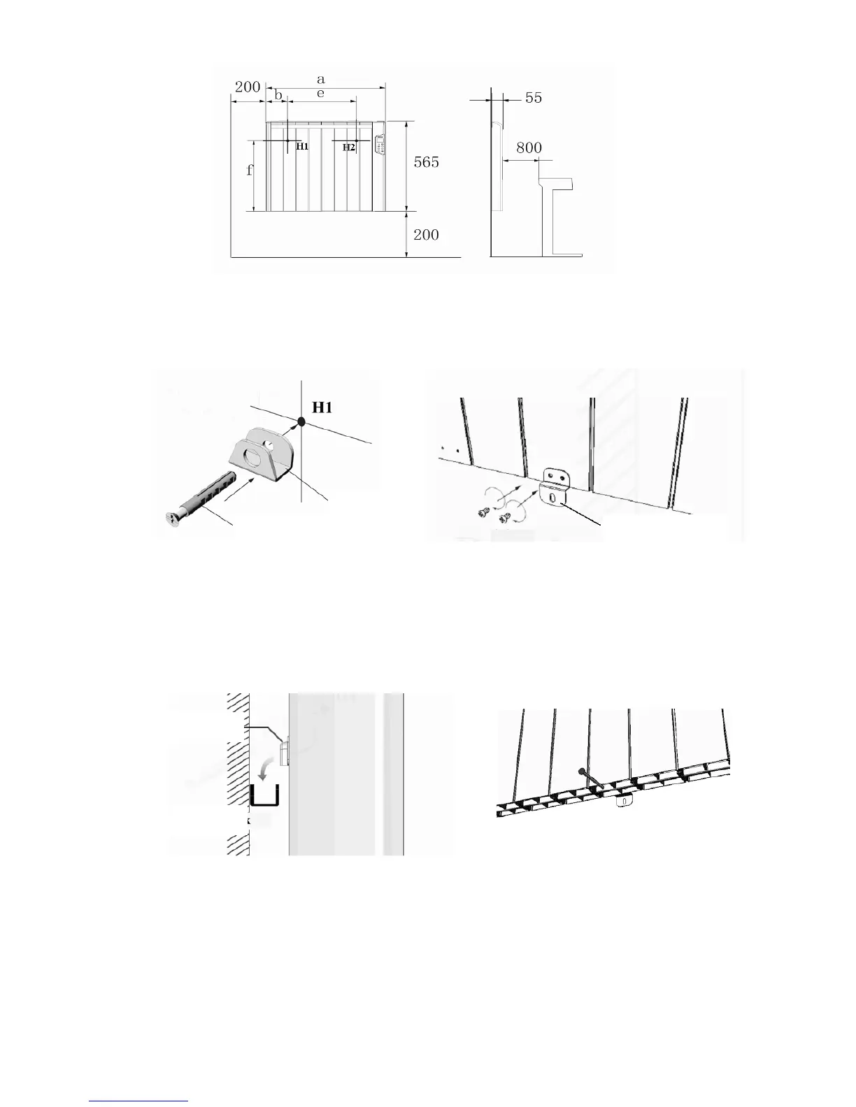 • Fije dos ganchos en la pared en las posiciones H1 y H2 con los tornillos de expansión (Figura