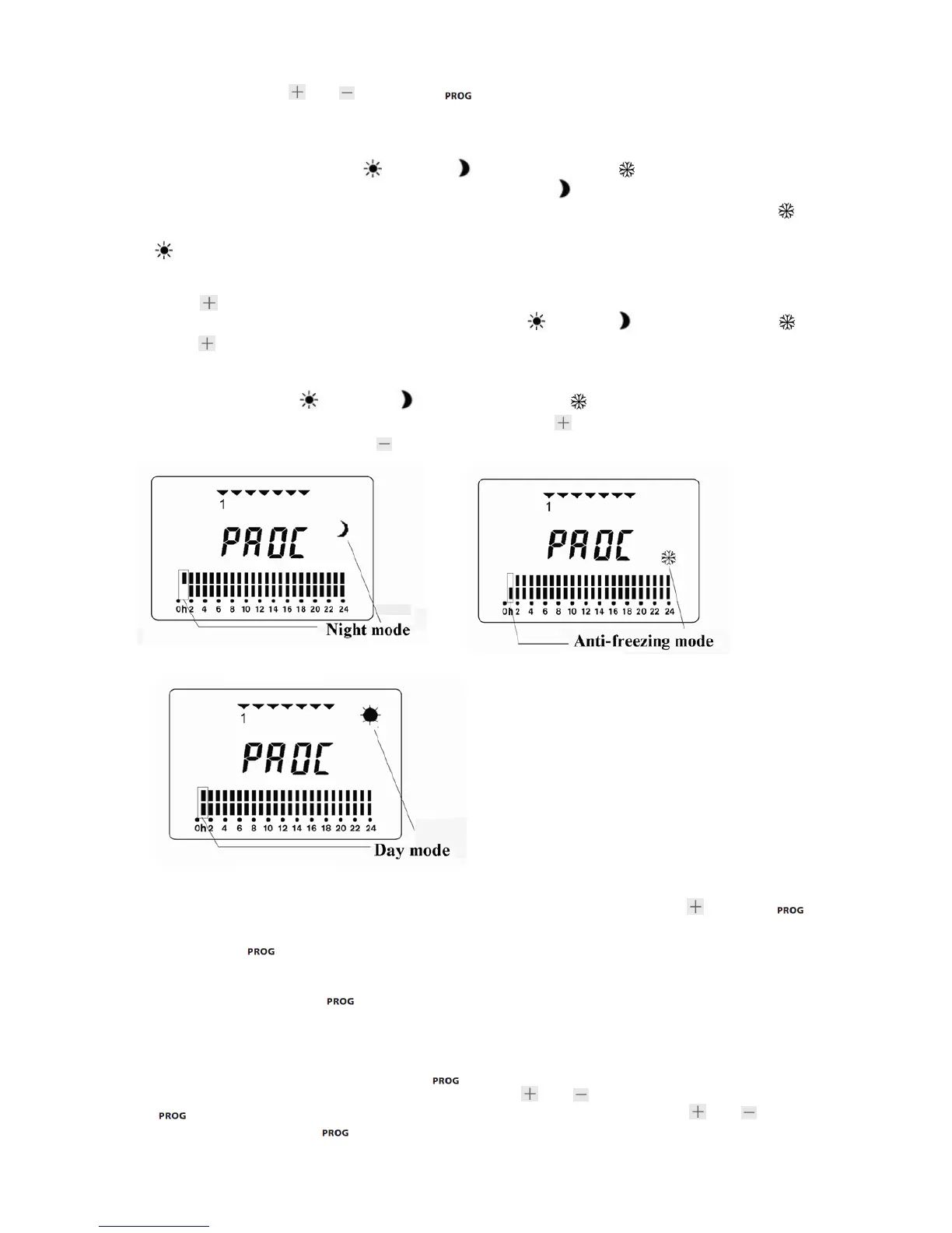 ”), night (“ ”), or anti-freezing (“ ”) button to chose the mode for