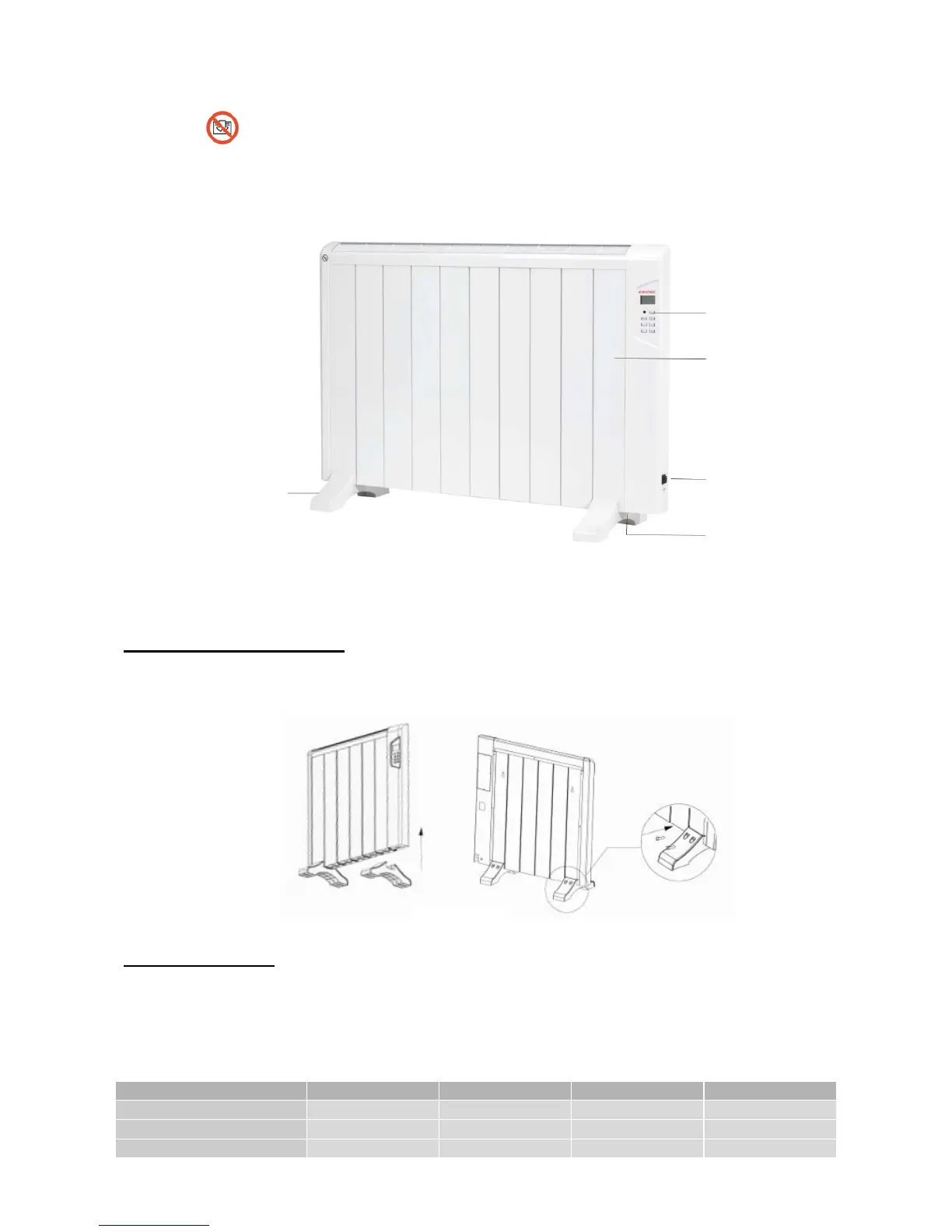 Placez les pieds sur le dessous du chauffage, dans les premières et dernières rangées