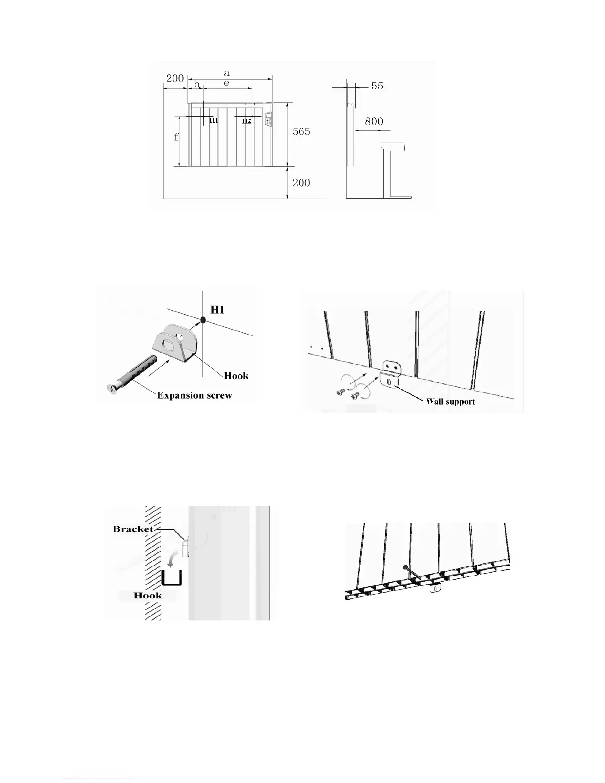 • Finally hang the heater on the hooks and screw the wall support to the wall firmly (shown in