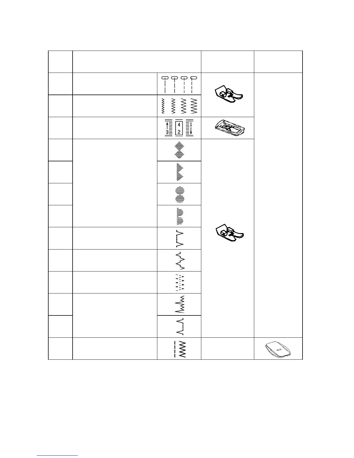 SEWING (PATTERN SELECTOR) AND OPERATION TABLE