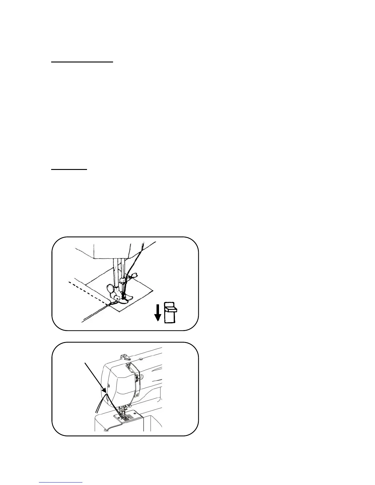 3. Sufficient fabric should be placed under needle before lowering the presser foot.