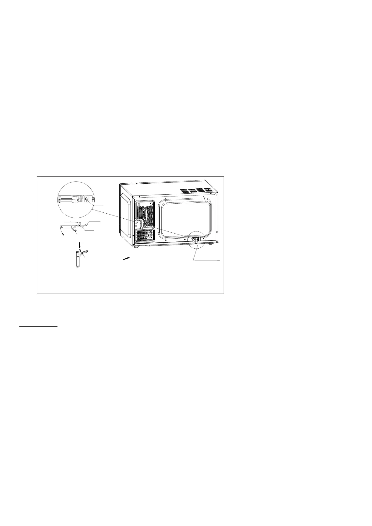 3. Introduza o Grampo B e o C nos orifícios quadrados situados na parte de trás do microondas.