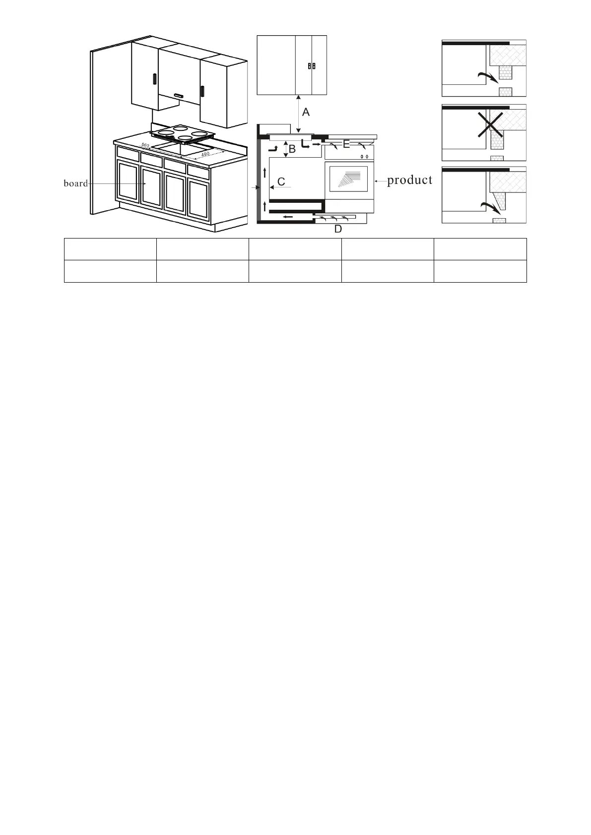 • Lower part of induction cooker ambry must install the product such as oven, or close with board.