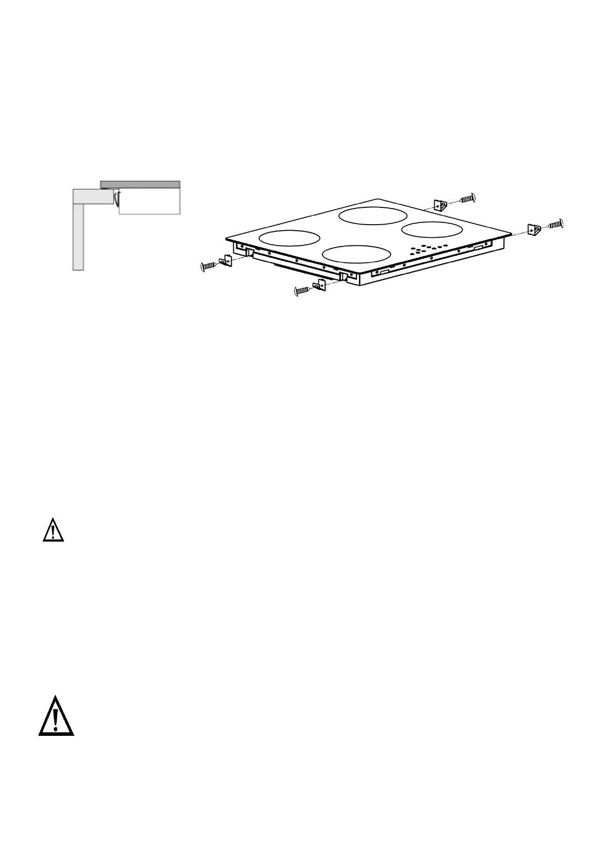 Fix the brackets on the left side and right side by screw. Put the induction hob in the cut-out cabinet.