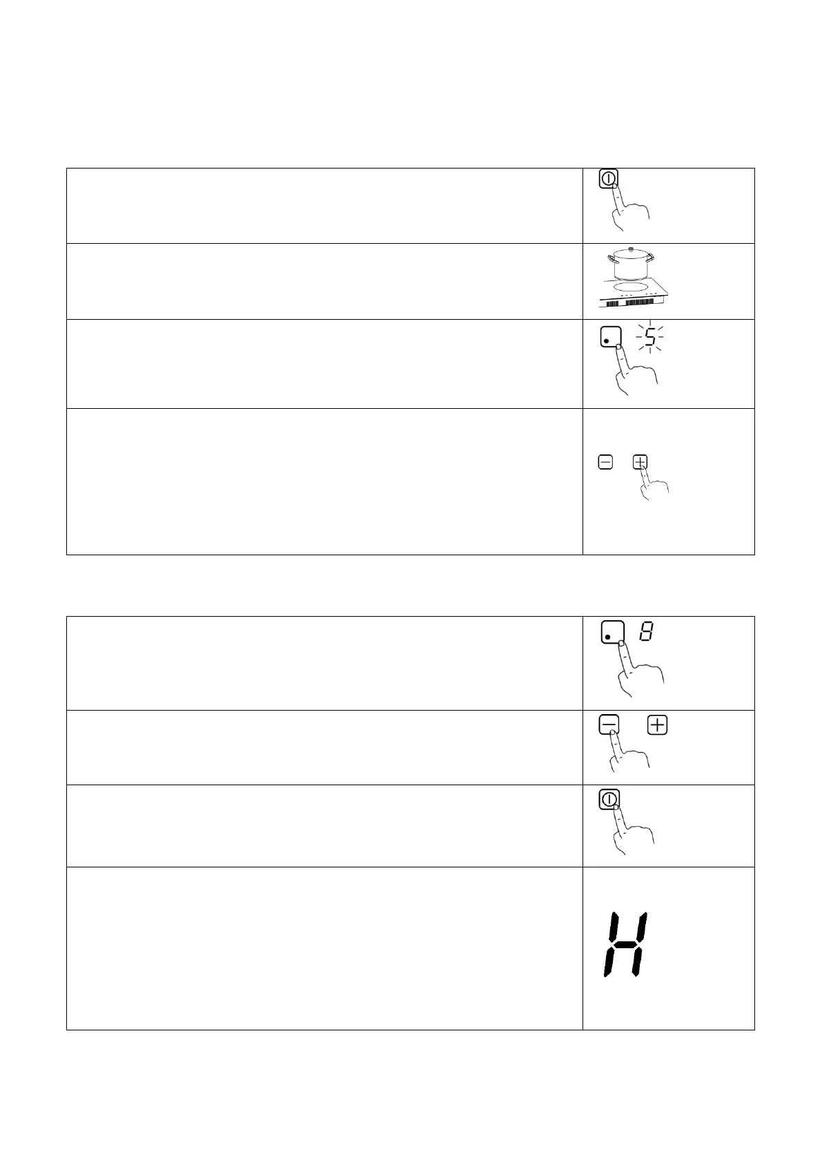 Aparecerá una "H", lo que significa que la zona de cocción está