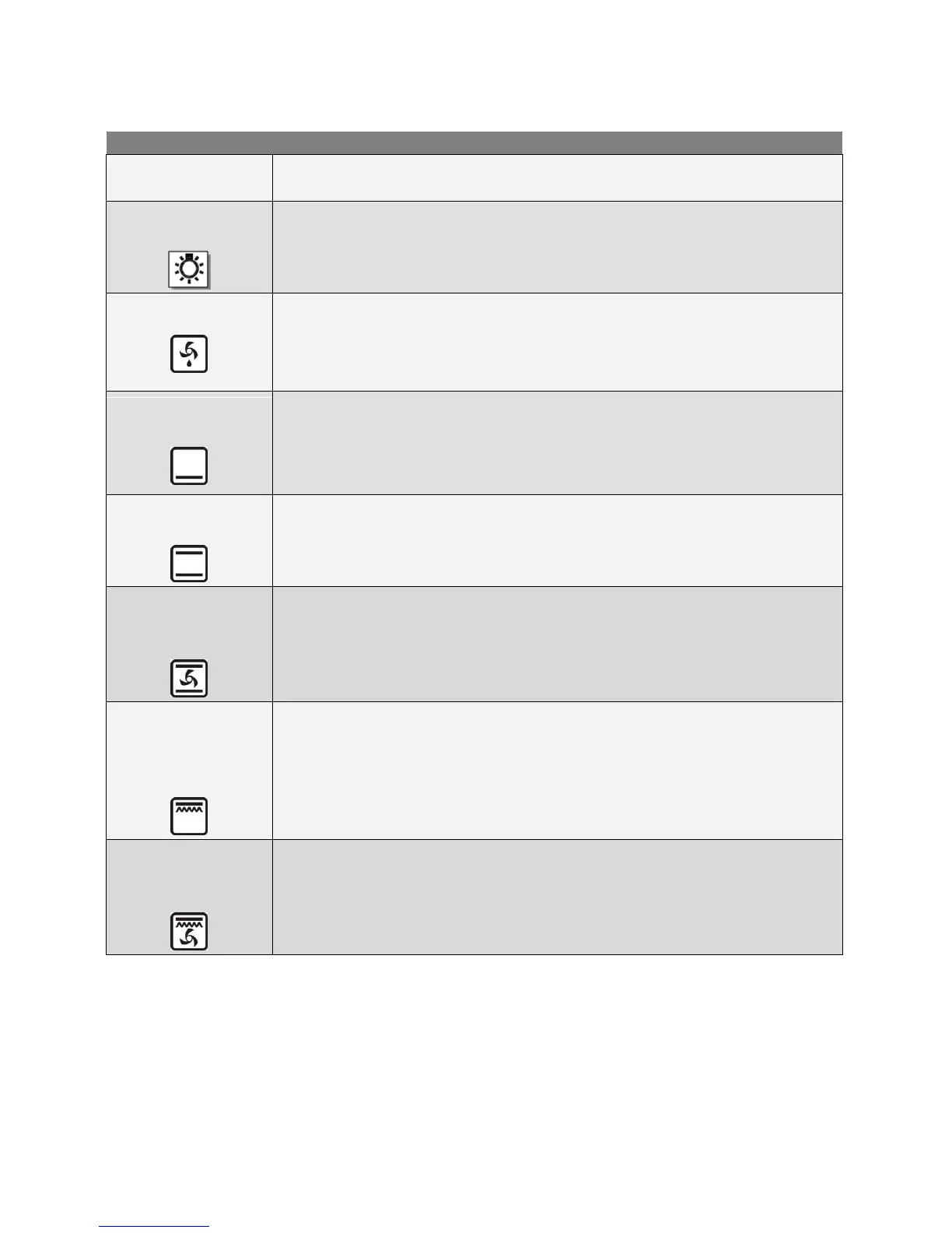 Seleccione esta função e a luz interior do forno liga-se, p. ex., usar quando limpar o