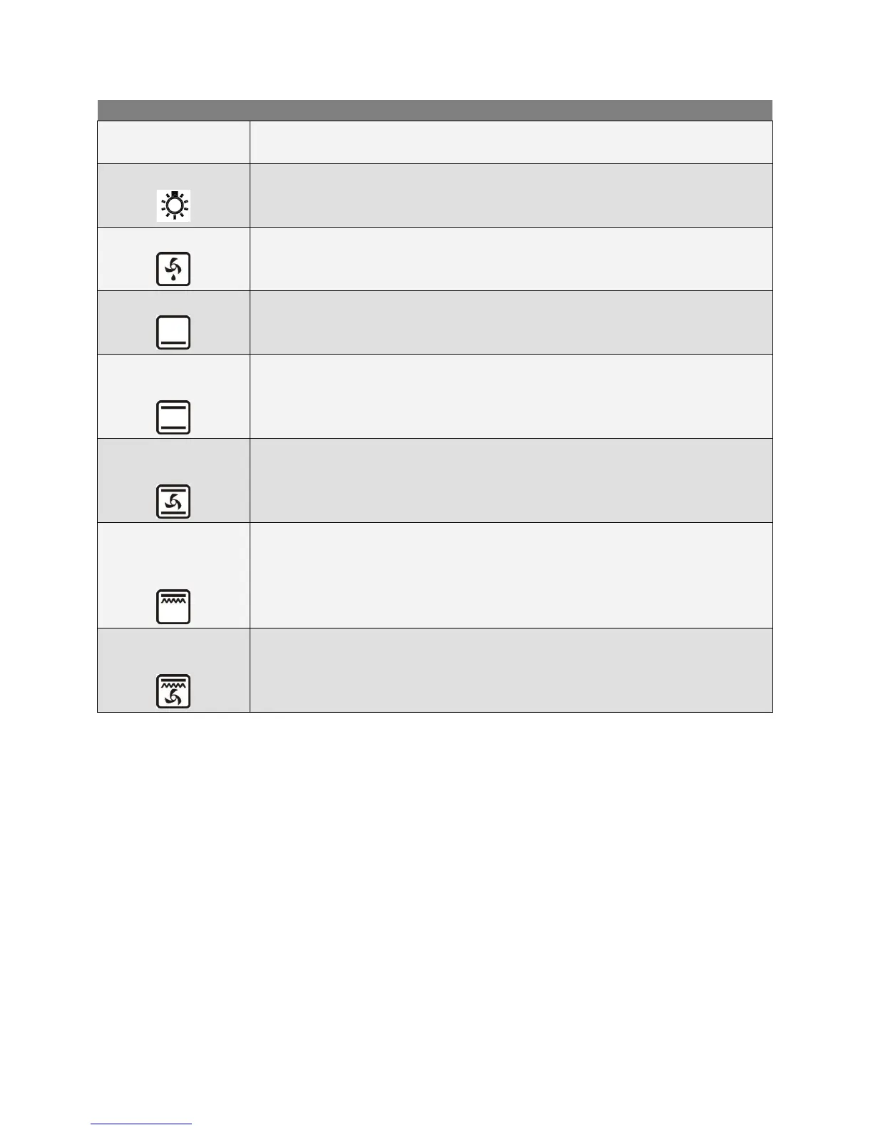 By setting the knob to this position the lighting inside the oven is switched on, e.g. use