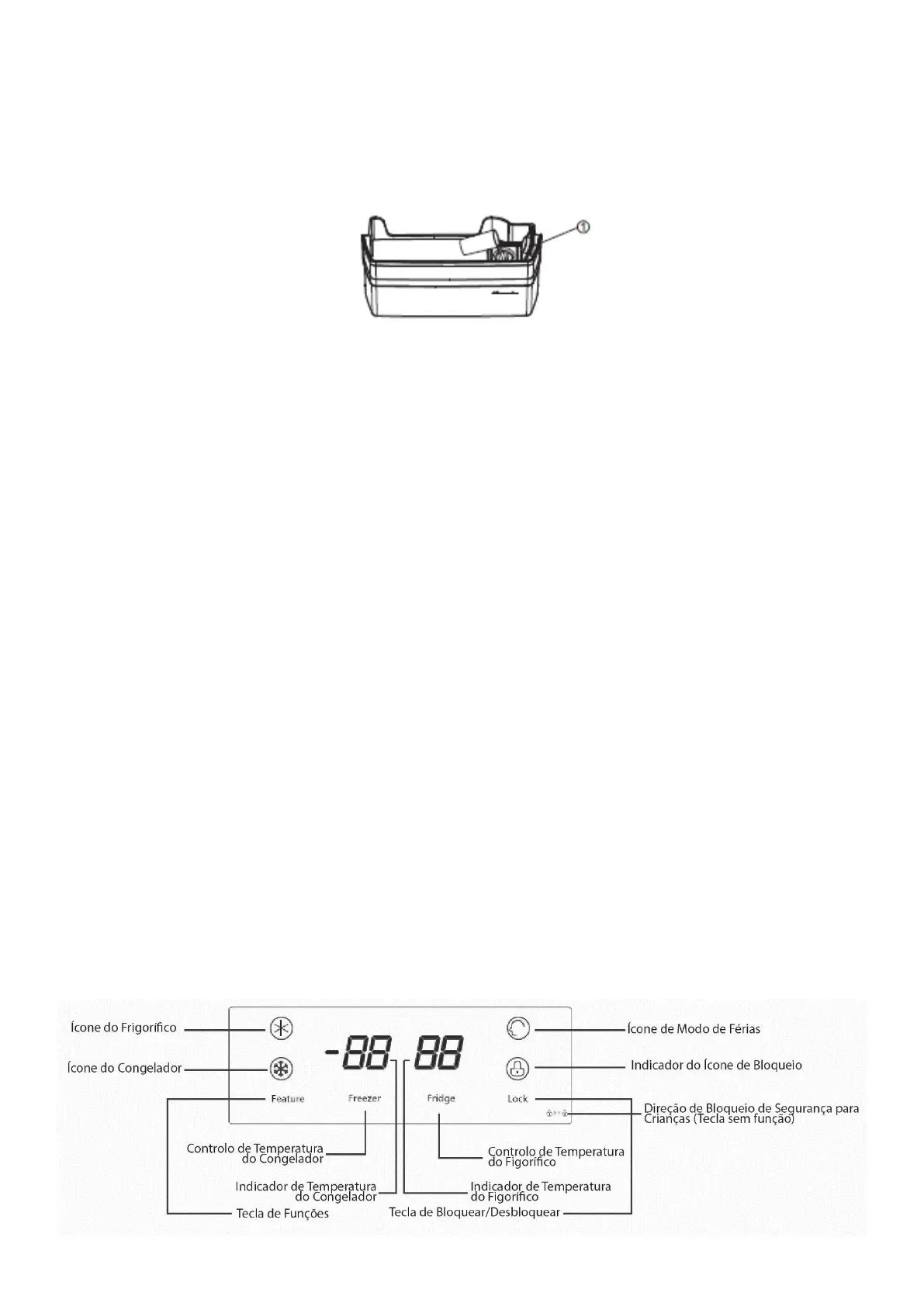 temperatura do frigorífico está definida para 5ºC e a temperatura do congelador está definida