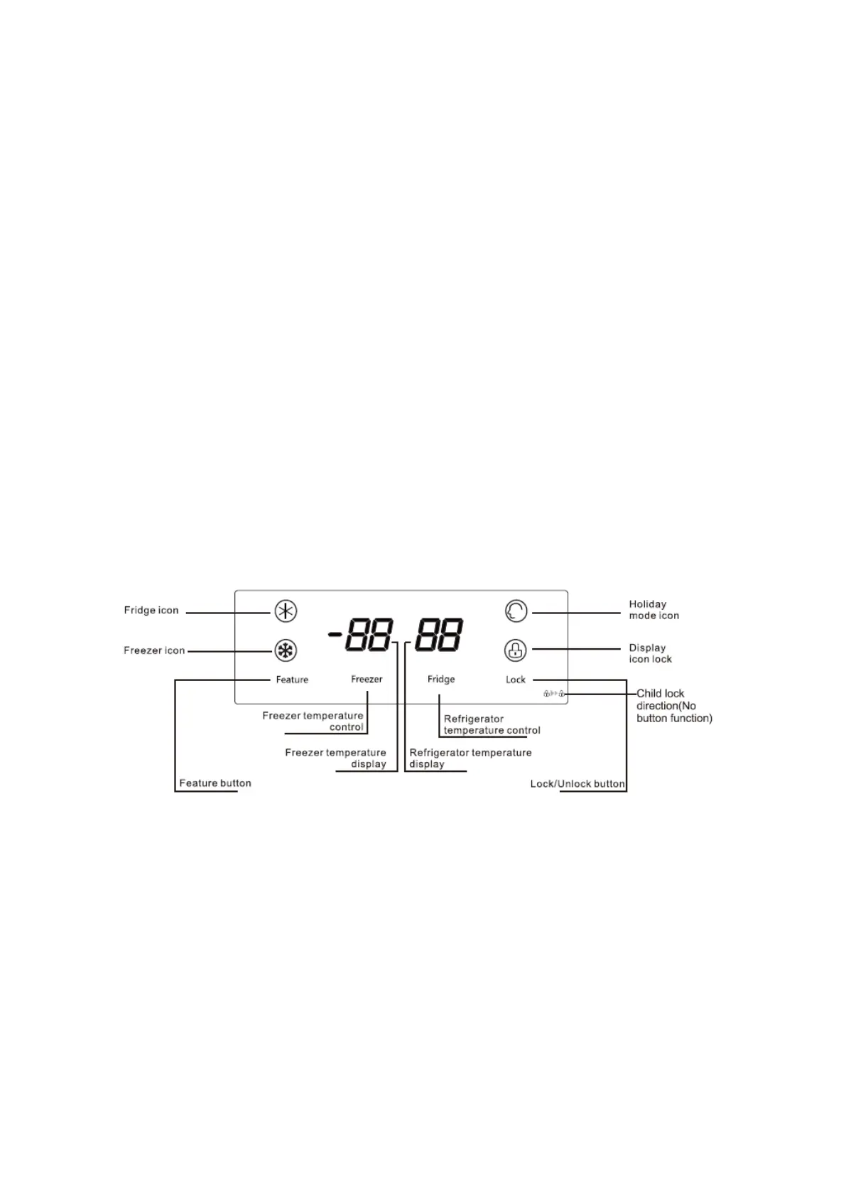 • Holiday Mode - the refrigerator will run at 6°c while the freezer will operate at -15°c.