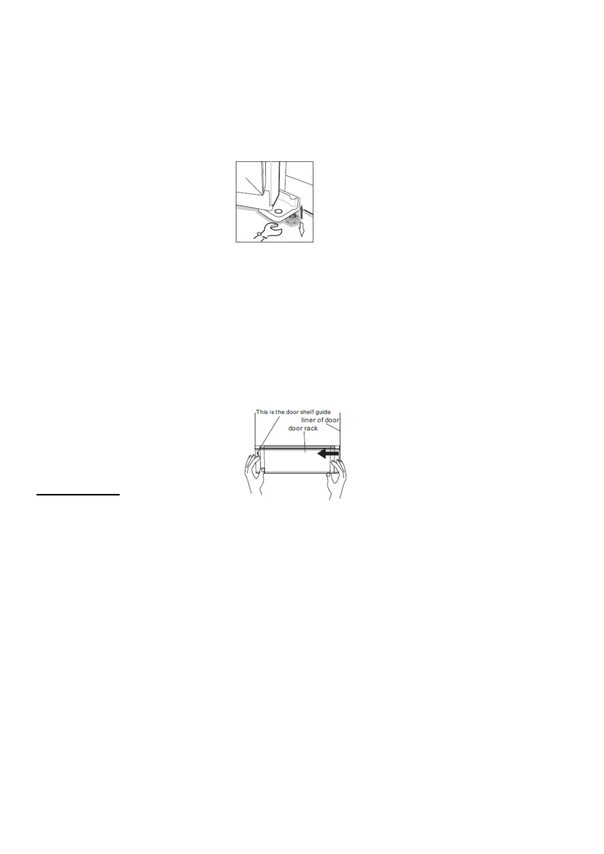 guide and push it inward as seen in the diagram. Push until the edge of the door rack is separated
