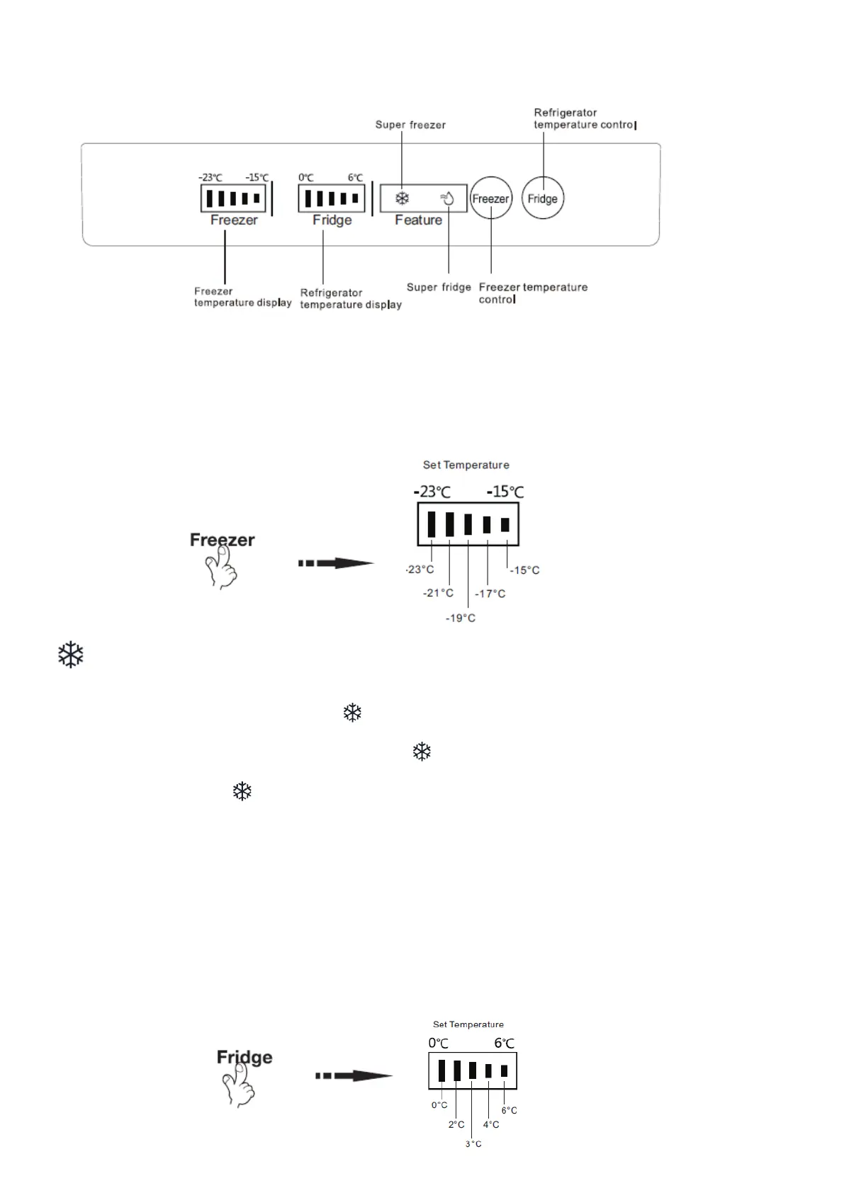 The default temperature of the freezer is -19°C. To change the temperature, press the “Freezer”