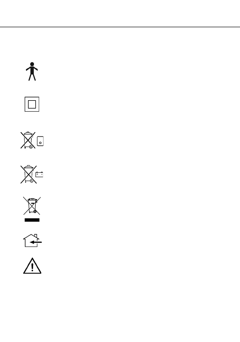 The following symbols are used on the charger, control unit and battery: