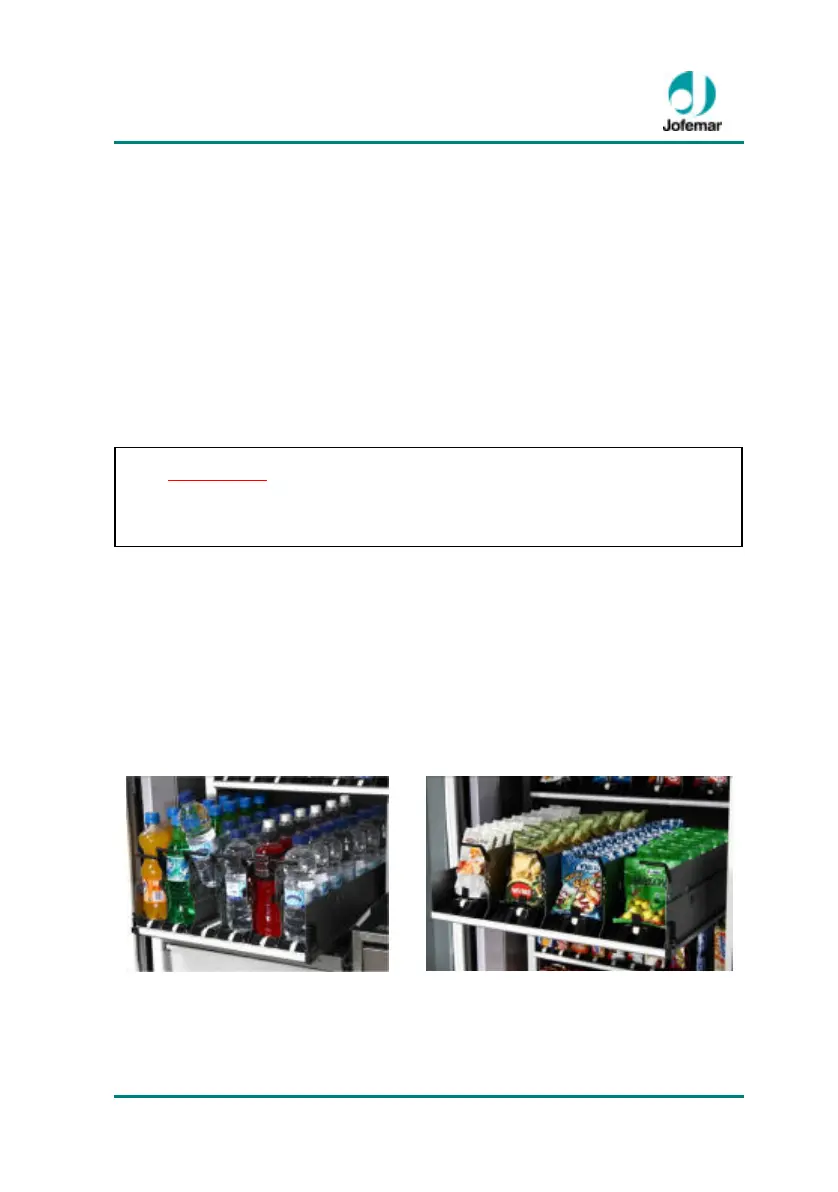 to be restocked and place the products in their channel until all of the machine’s trays