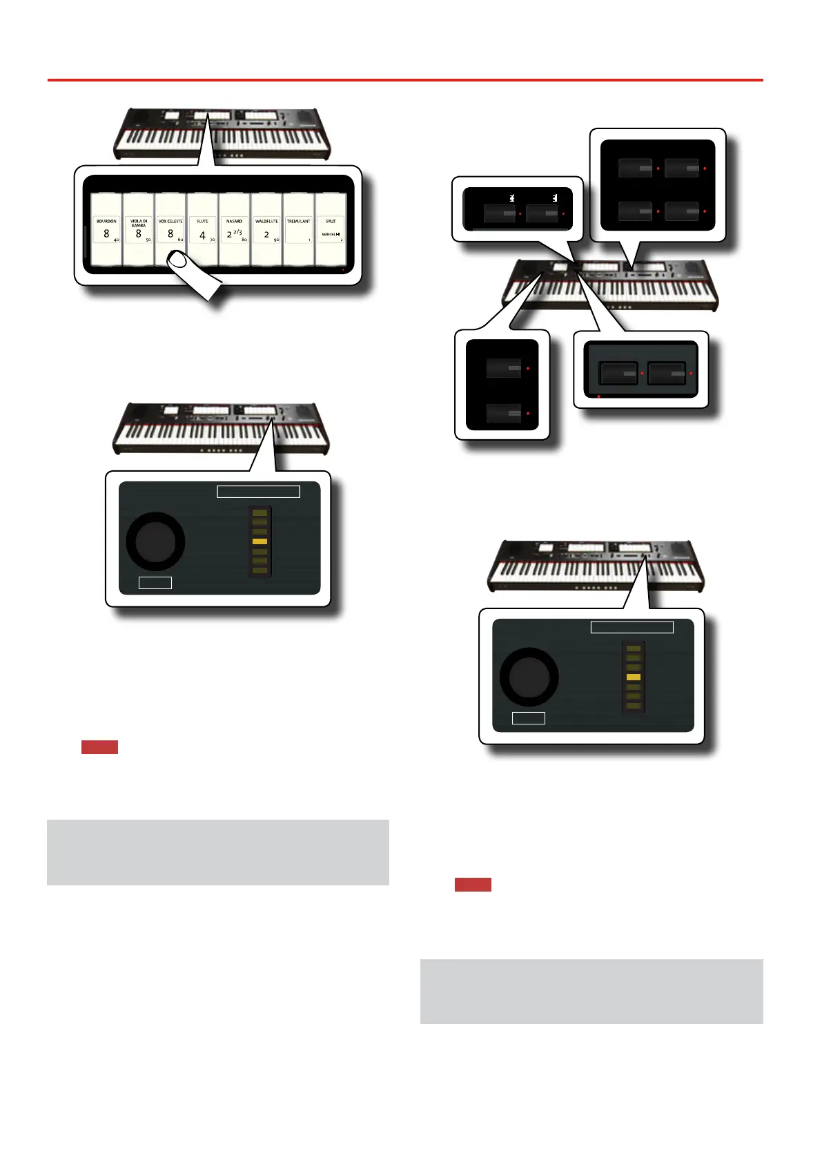 PEDAL) and the volume of the Piano and Harpsichord sections of the MANUAL II.