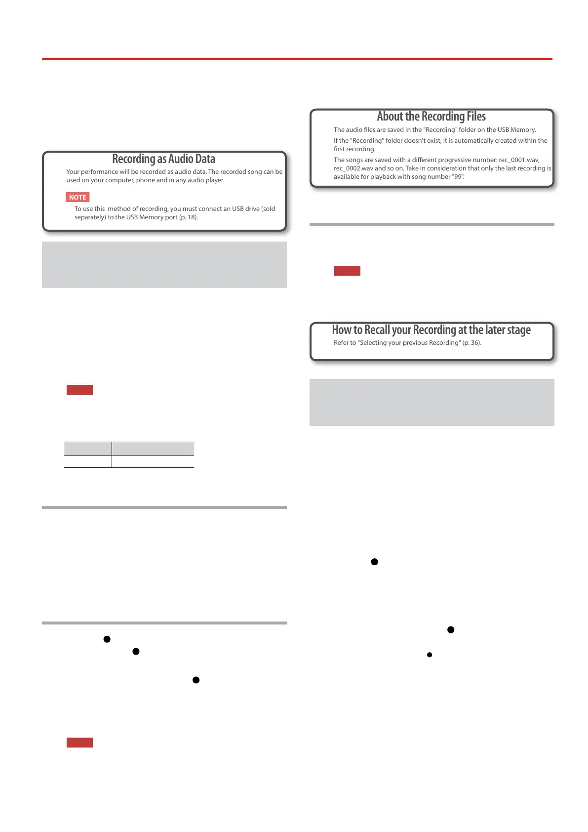 The audio les are saved in the "Recording" folder on the USB Memory.