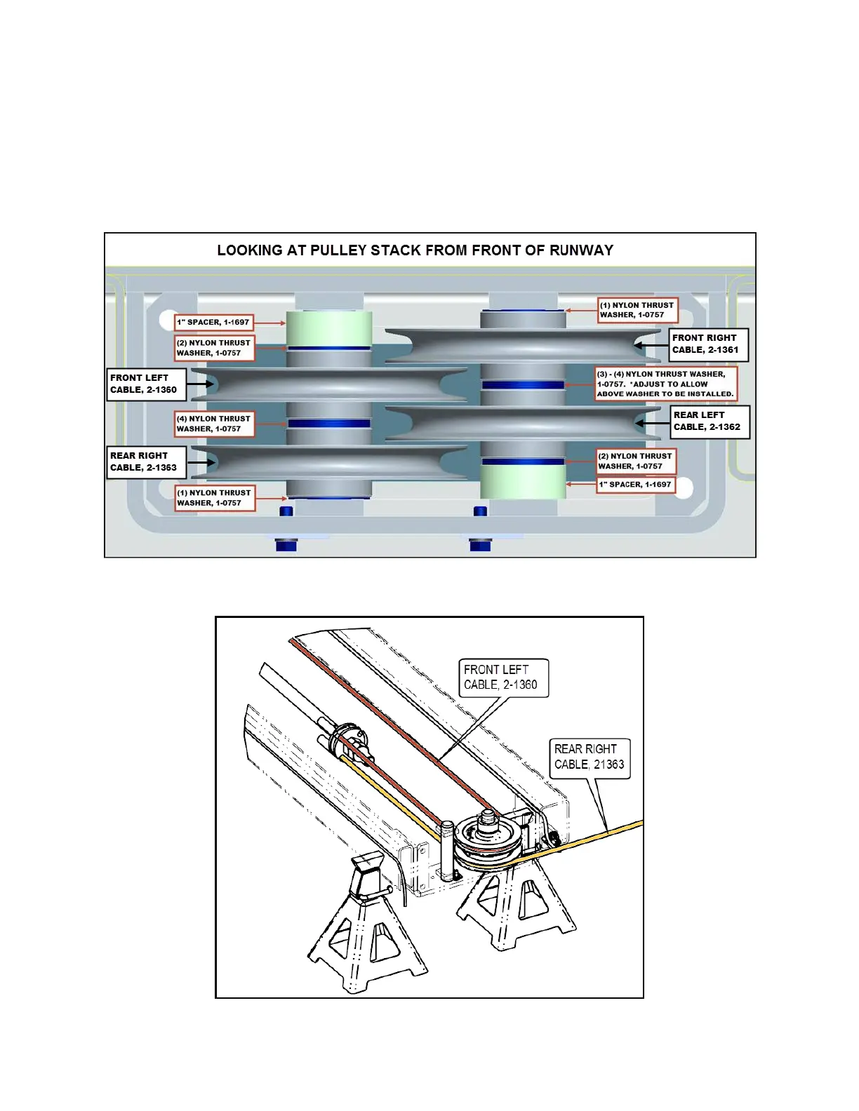 front left cable 2-1360 wrapped around the pulley. Push pulley pin further