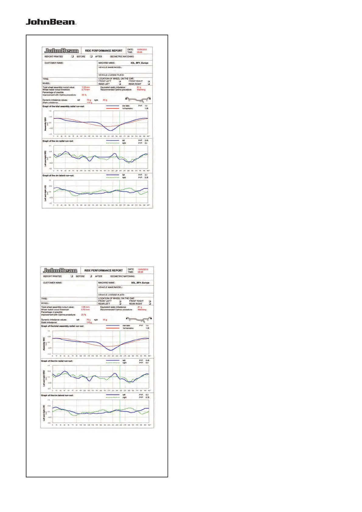 The report print out, after a complete wheel run,