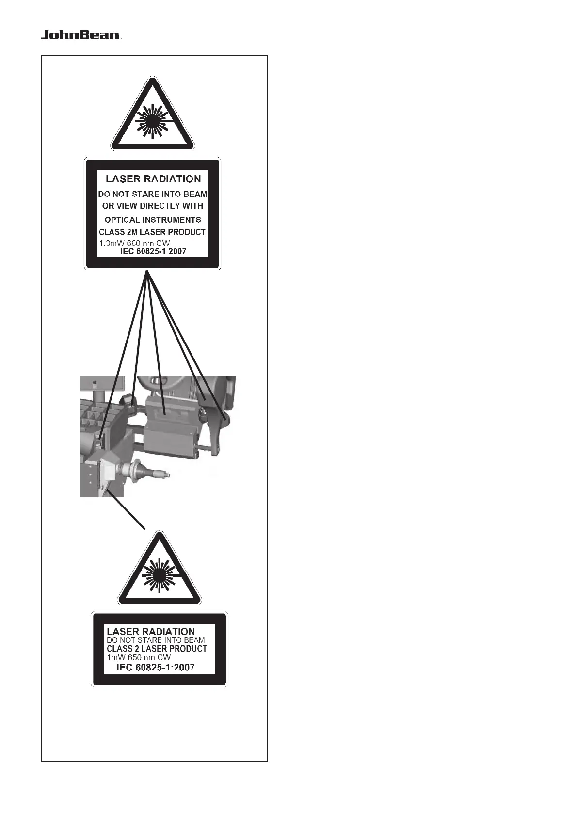 - Class 2M with power 1.3 mW, 660 nm CW in position