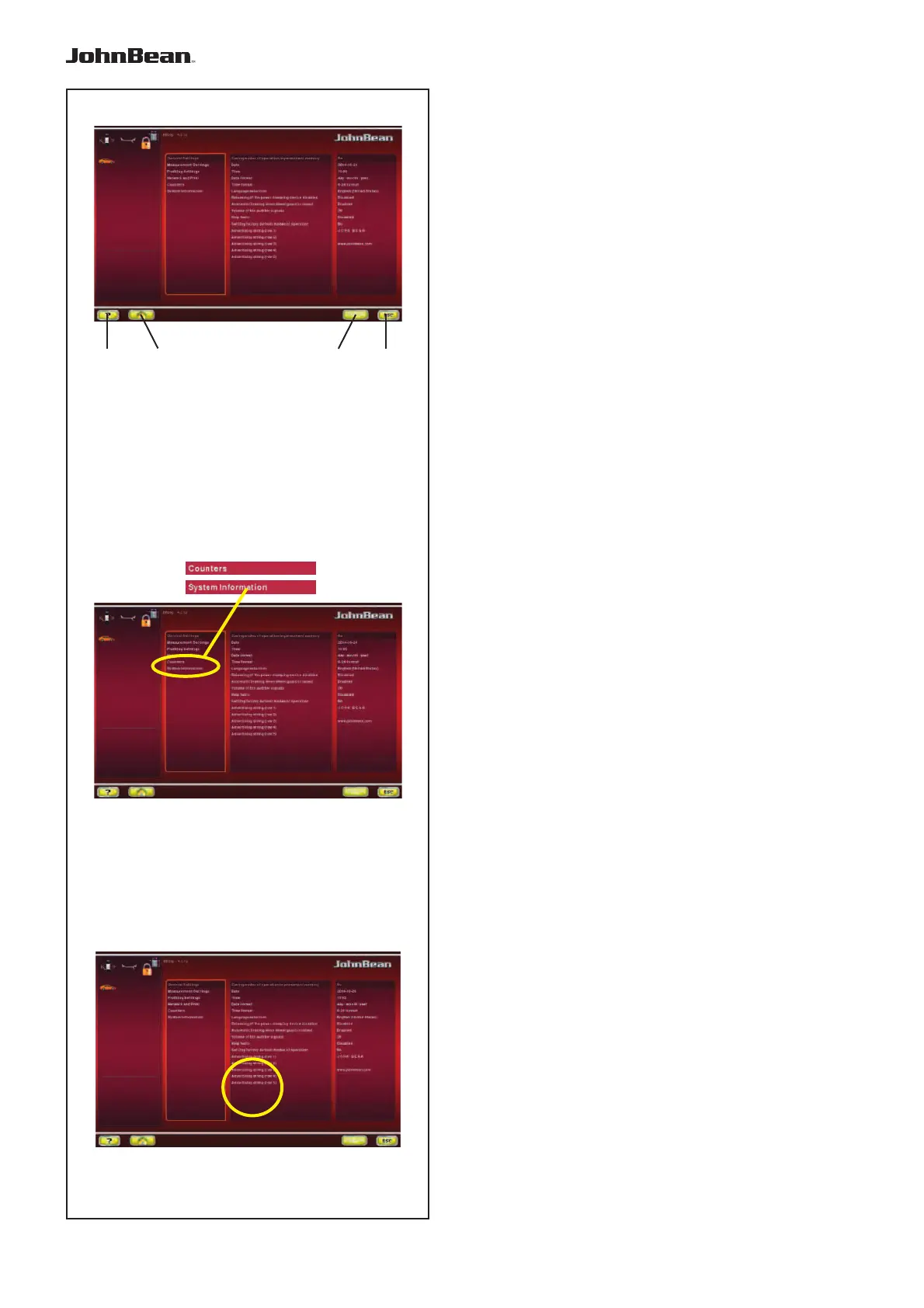 The screen pages for Counters and System Information